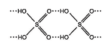 b) Với cấu tạo gồm các nguyên tử hydrogen linh động và các nguyên tử oxygen có độ âm điện lớn, giữa các phân tử sulfuric acid hình thành nhiều liên kết hydrogen: