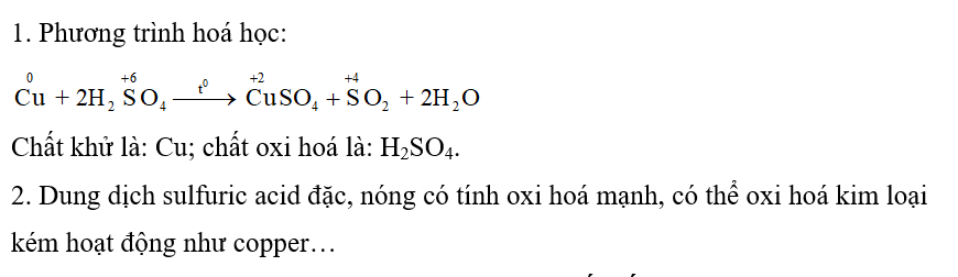 2. Nhận xét về khả năng phản ứng của dung dịch sulfuric acid đặc, nóng với copper.