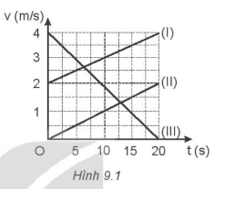 Hình 9.1 là đồ thị vận tốc – thời gian của ba chuyển động thẳng biến đổi đều.