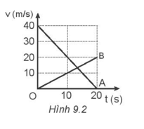 Hai vật có cùng vận tốc khi vA = vB ⬄ 40 – 2t = t ⬄ t = \(\frac{{40}}{3}\)≈13,3 s.