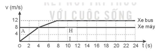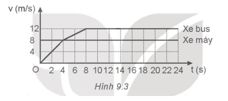 Đồ thị vận tốc – thời gian trong Hình 9.3 là của một xe bus và một xe máy chạy