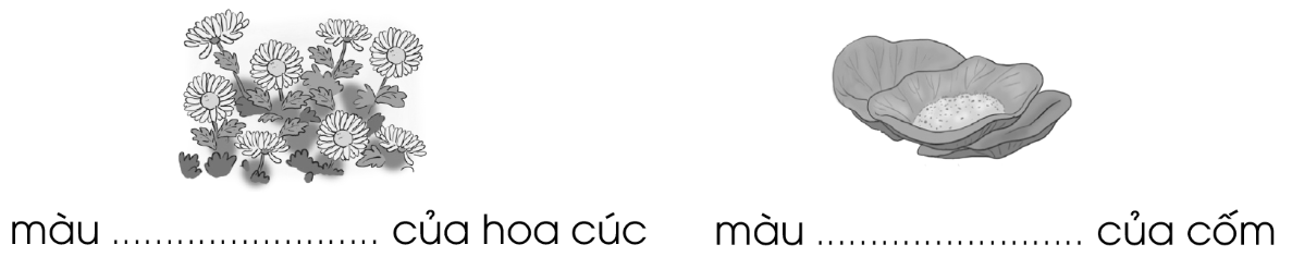 Những màu sắc nào được tả trong bài thơ gắn với mùa thu? Viết từ ngữ phù hợp dưới mỗi tranh: