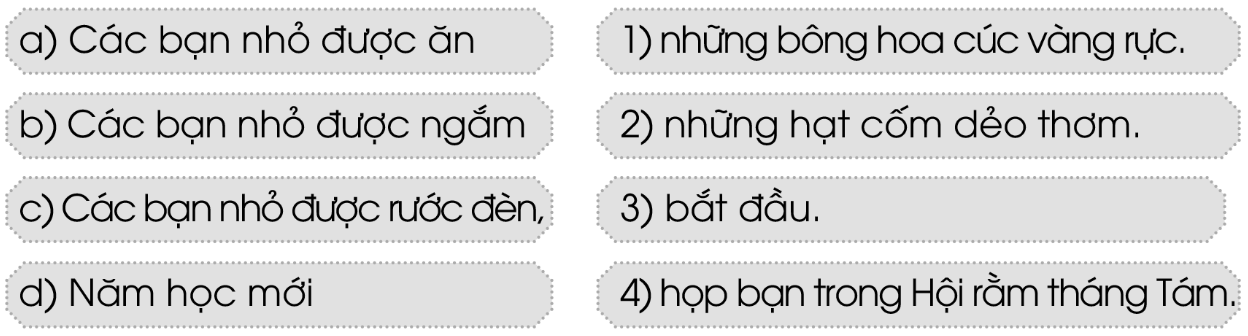 Mùa thu có gì vui đối với các bạn nhỏ? Nối đúng: