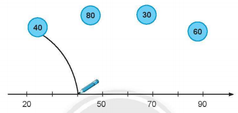 Ta thấy mỗi khoảng chia trên tia số là 10 đơn vị. Từ đó ta nối các số với tia số cho thích hợp.
