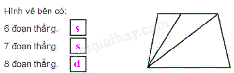 Quan sát hình vẽ để xác định số đoạn thẳng rồi điền đ, s vào chỗ trống.