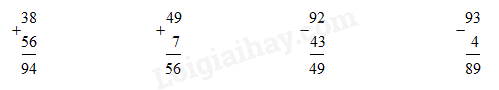 38 + 56                        49 + 7                          92 – 43                        93 – 4