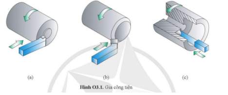 Quan sát các hình O3.1 và chỉ ra hình ảnh nào mô tả quá trình gia công tiện mặt đầu, tiền mặt trụ trong và tiện vát mép?