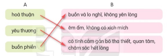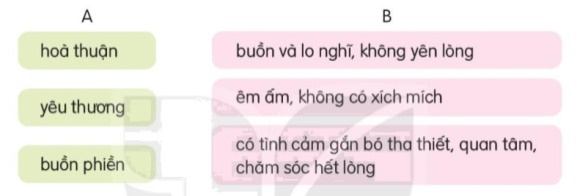 g. Tìm từ ngữ ở cột A phù hợp với nghĩa ở cột B