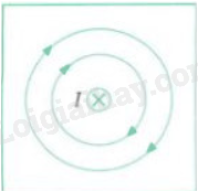 Vẽ đường sức của từ trường được tạo ra bởi dòng điện thẳng dài có phương vuông góc với mặt phẳng trang giấy và có chiều đi từ trước ra sau trang giấy.