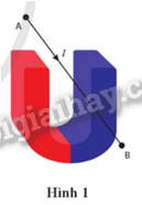 Một đoạn dây dẫn AB có dòng điện chạy qua được đặt cố định trong từ trường đều như Hình 1. Tìm hướng của lực từ tác dụng lên dây dẫn.