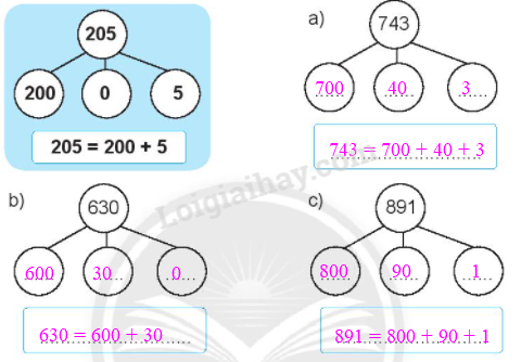 Quan sát ví dụ mẫu em viết các số thành tổng của các trăm, chục, đơn vị.