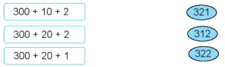 Nối mỗi số với cách viết thành tổng các trăm, chục, đơn vị của số đó.