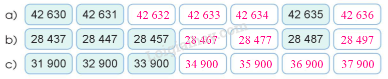 Đếm thêm 1 đơn vị, 10 đơn vị hoặc 1 000 đơn vị kể từ số đầu tiên rồi viết số thích hợp vào ô trống.