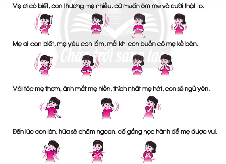 Em hãy nghe và vận động cơ thể theo nhạc bài Mẹ ơi có biết – nhạc và lời Nguyễn Văn Chung với các động tác sau: