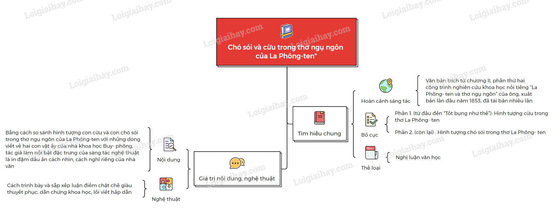 Sơ đồ tư duy về văn bản “Chó sói và cừu trong thơ ngụ ngôn của La Phông-ten”: