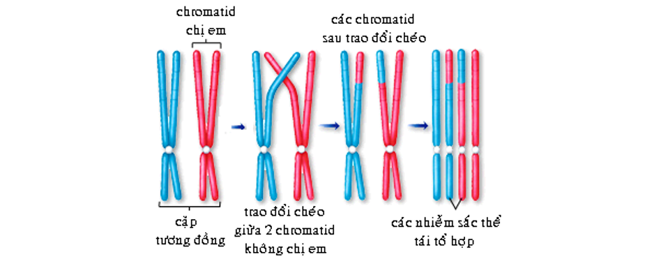 Sự trao đổi chéo nhiễm sắc thể trong giảm phân tạo ra các giao tử có vật chất di truyền khác nhau, các giao tử kết hợp với nhau tạo các hợp tử có kiểu gen khác nhau. Như vậy sự trao đổi chéo ở kì đầu và kì giữa của giảm phân I góp phần tạo ra sự đa dạng về kiểu gen ở loài