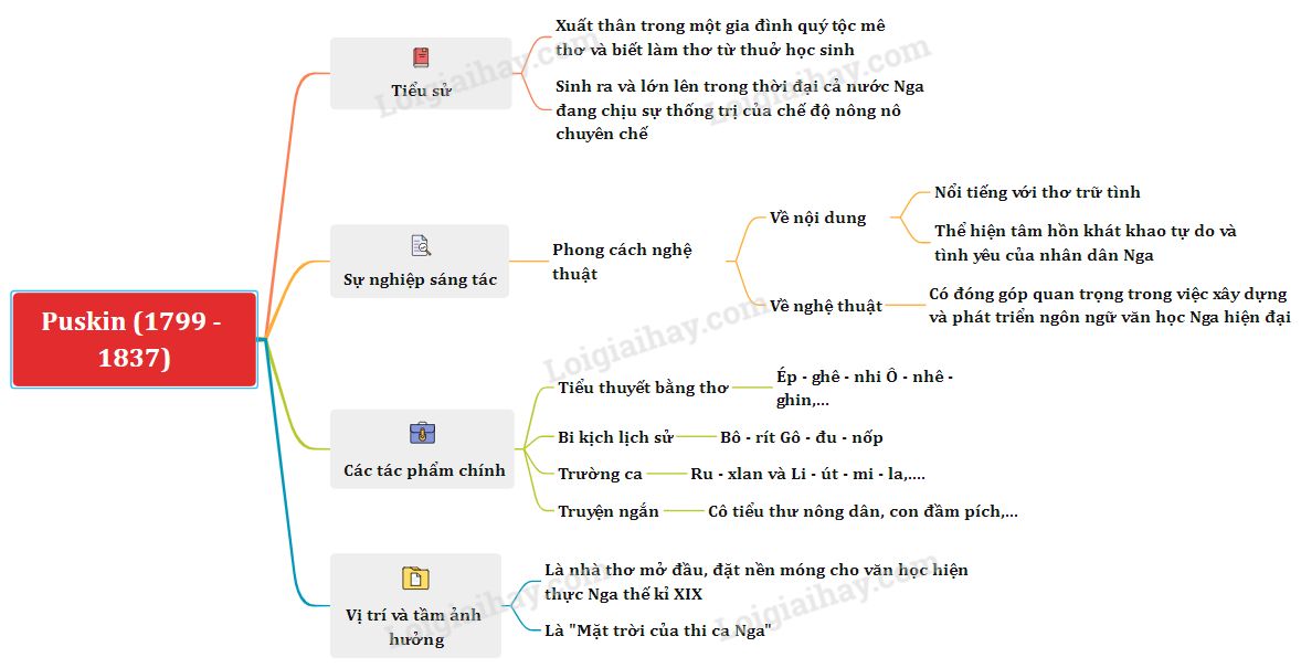 Sơ đồ tư duy Tác giả Pushkin