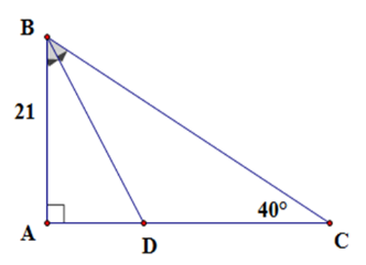 Xét tam giác \(ABD\) vuông tại \(A\) ta có \(BD = \dfrac{{AB}}{{\cos \widehat {ABD}}} = \dfrac{{21}}{{\cos 25^\circ }} \approx 23,2\,cm\)