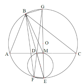 Vì vậy \(\widehat {MBD} = \widehat {DGM} = \widehat {FGE}\,\,\left( 1 \right)\) (cùng chắn cung \(DM)\)