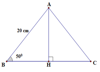 Cạnh bên của tam giác \(ABC\) cân tại \(A\) dài $20cm$ , góc ở đáy là \(50^\circ \)