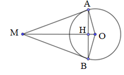 Cho hình vẽ, MAMB là hai tiếp tuyến của đường tròn \(\left( {O,3cm} \right)\), \(MA = 4cm\). Độ dài đoạn thẳng AB là: