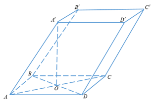 Vậy \(V = A’O.{S_{ABCD}} = \dfrac{{a\sqrt 3 }}{2}.a.a\sqrt 3  = \dfrac{{3{a^3}}}{2}\)