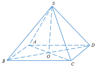 Hình chóp có các cạnh bên bằng nhau nên chân đường vuông góc kẻ từ S xuống mặt phẳng (ABCD) là điểm O