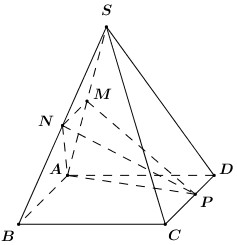 \( \Rightarrow {V_{AMNP}} = \dfrac{1}{3}.d\left( {C;\left( {SAB} \right)} \right).\dfrac{1}{4}.{S_{SAB}} = \dfrac{1}{4}{V_{C.SAB}}\).