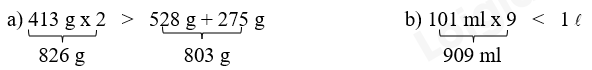 – Áp dụng cách so sánh: 1  = 1000 ml ; 1 kg = 1 000g