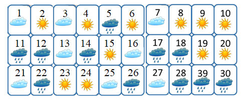 Câu 6. Một người đã ghi lại thời tiết trong tháng 6 như sau: