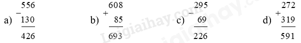 – Cộng hoặc trừ các chữ số thẳng cột lần lượt từ phải sang trái