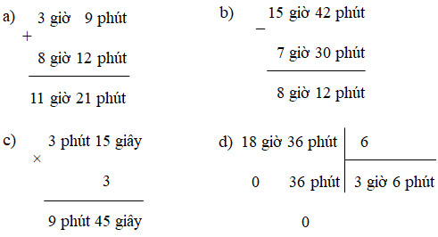 a) 3giờ 9 phút + 8 giờ 12 phút