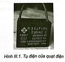 Quạt điện nhà bạn A bị hỏng chiếc tụ điện như Hình III.1 và cần được thay thế. Cửa hàng đồ điện có một số loại tụ điện đang bán như sau: