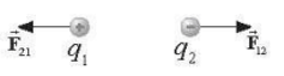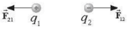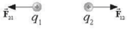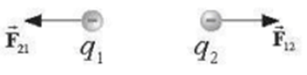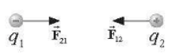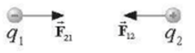 \(F = k\frac{{\left| {{q_1}{q_2}} \right|}}{{{r^2}}}\) xác định độ lớn lực tương tác tĩnh điện giữa hai điện tích điểm q1, q2 đặt cách nhau một khoảng r trong chân không, với \(k = {9.10^9}.\frac{{N{m^2}}}{{{C^2}}}\) là hằng số Coulomb
