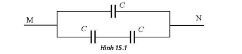 Xét các tụ điện giống nhau có điện dung C=20pF.  Ghép các tụ điện thành bộ tụ như Hình 15.1 và nối hai điểm M, N với nguồn điện có hiệu điện thế U = 12V. Điện tích của bộ tụ là