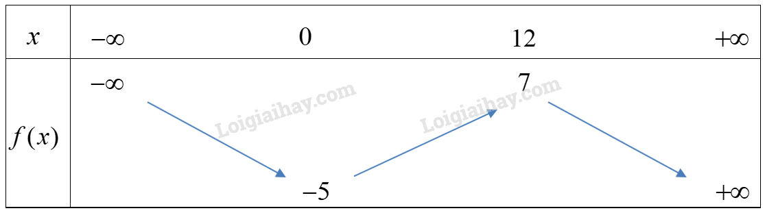 Ta có bảng biến thiên: