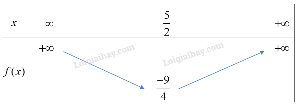 Hàm số đồng biến trên \((\frac{5}{2}; + \infty )\) và nghịch biến trên \(( – \infty ;\frac{5}{2})\).