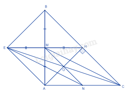 3. Gọi \(O\) là giao điểm của \(AH\)và \(EC,{\rm{ }}N\) là trung điểm của \(AC.\) Chứng minh \(M,O,N\) thẳng hàng.