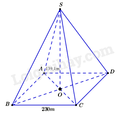 Diện tích đáy là: \(S = {S_{ABCD}} = C{D^2} = {230^2}{\mkern 1mu} {\mkern 1mu} ({m^2})\)