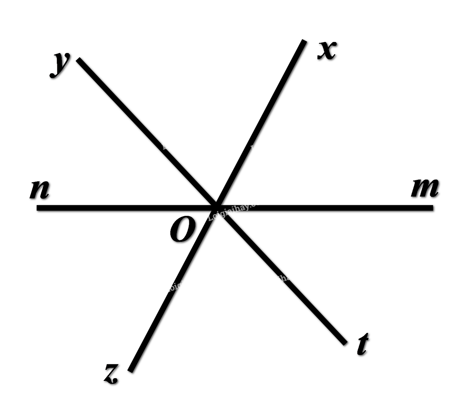 Vậy \(\angle zOn\) và \(\angle xOm\) là hai góc đối đỉnh.