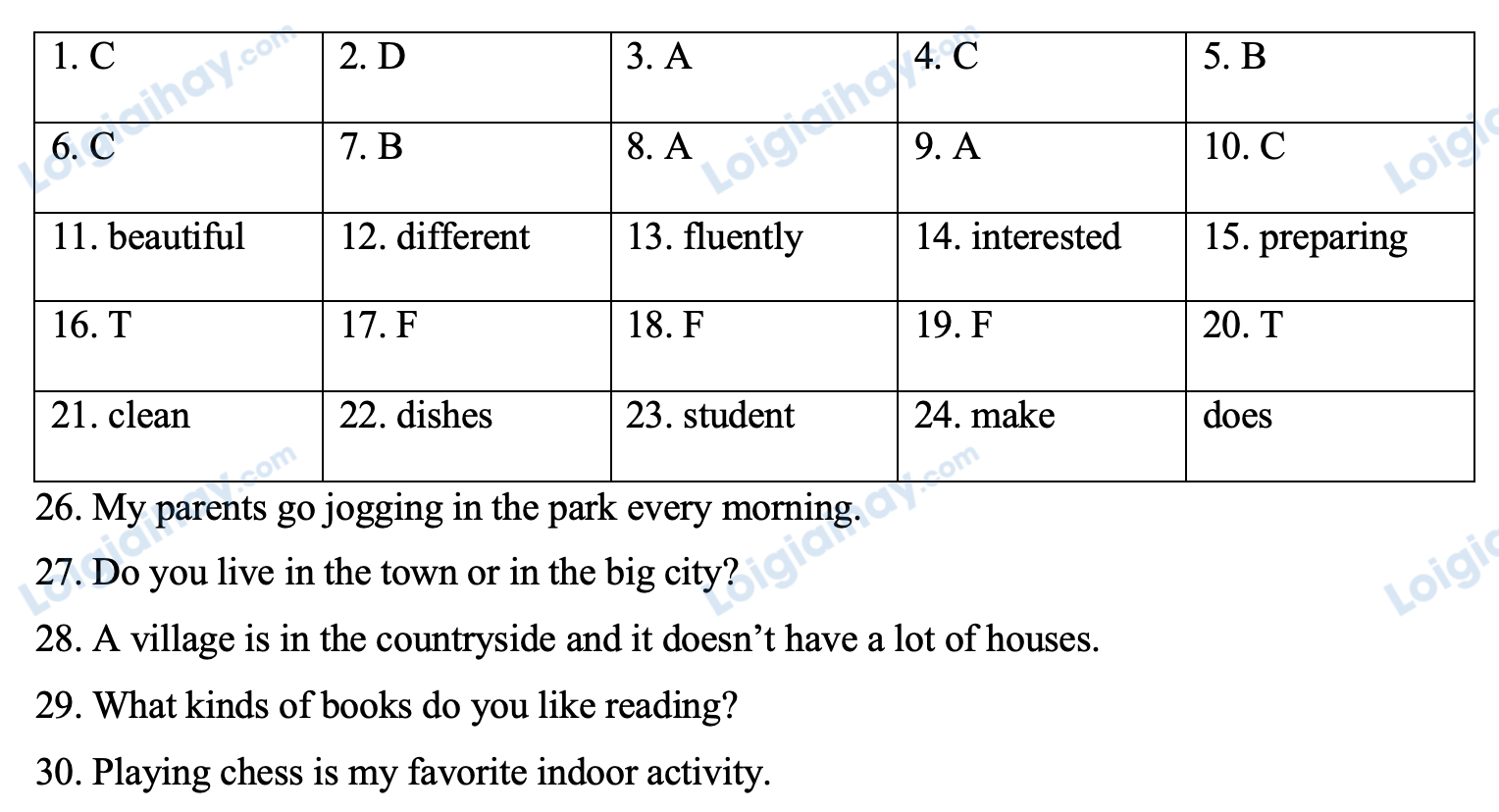 I think I do the most housework in my family. I clean (21) the kitchen every day. I do the dishes (22), too. My mom does the shopping. She’s a teacher in a school. My sister is a college student (23). She doesn’t do anything! She doesn’t make (24) her bed or clean her room. My dad cleans her room after work. He’s a chef in a restaurant so he makes dinner. He does (25) the laundry and cleans the bathroom, too. Hmm. Now, I really think about it, my dad does the most housework.