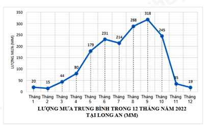 Câu 6. Biểu đồ đoạn thẳng dưới đây cho biết lượng mưa trung bình trong 12 tháng tại Long An (đơn vị: mm).