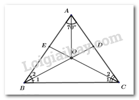 Trong tam giác ABC ta có: \(\hat B + \hat C = {180^^\circ }{\rm{ \;}} – \hat A = {180^^\circ }{\rm{ \;}} – {70^^\circ }{\rm{ \;}} = {110^^\circ }\).
