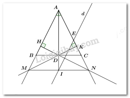 Vì \(AD\)là tia phân giác của góc \(A\)nên suy ra \(AD\)đồng thời là đường cao trong \(\Delta AMN\)ứng với cạnh \(MN\).