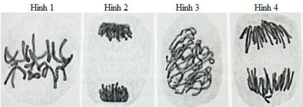 Câu 7. Hình dưới đây là ảnh chụp các tế bào mô phân sinh đỉnh ngọn của một loài cây đang trong quá trình nguyên phân. Biết rằng bộ NST lưỡng bội của loài cây này là 2n = 18. Thứ tự các hình đúng với các giai đoạn của nguyên phân là: