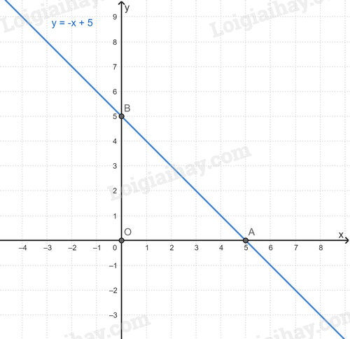 Quan sát đồ thị hàm số \(y =  – x + 5\), ta thấy đồ thị tạo với hai trục tọa độ một tam giác vuông cân tại O, khi đó \(\widehat {OAB} = \widehat {OBA} = {45^0}\)\( \Rightarrow \) Góc tạo bởi đường thẳng  \(y =  – x + 5\) và trục Ox bằng \({45^0}\).