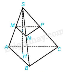 Mặt khác, \(SH \bot \left( {ABC} \right)\) nên \(SH \bot \left( {MNP} \right)\). Mà \(MP \subset \left( {MNP} \right) \Rightarrow SH \bot MP\)