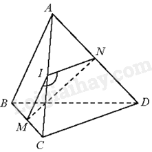 Suy ra: \(\left( {AB,CD} \right) = \left( {IM,IN} \right) = {180^0} – \widehat {MIN} = {180^0} – {120^0} = {60^0}\)