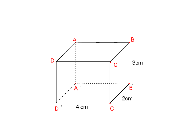 Thể tích hình lăng trụ ABCD.A’B’C’D’ là: V = 4.2.3 = 24 (cm3).