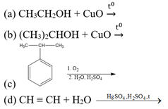 Cho các phản ứng sau: